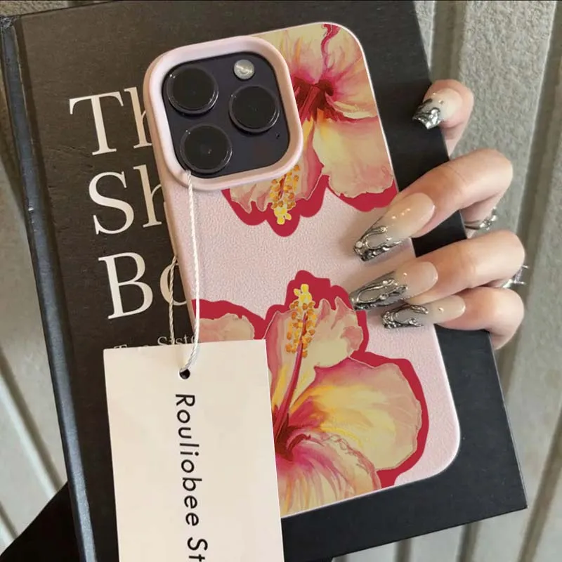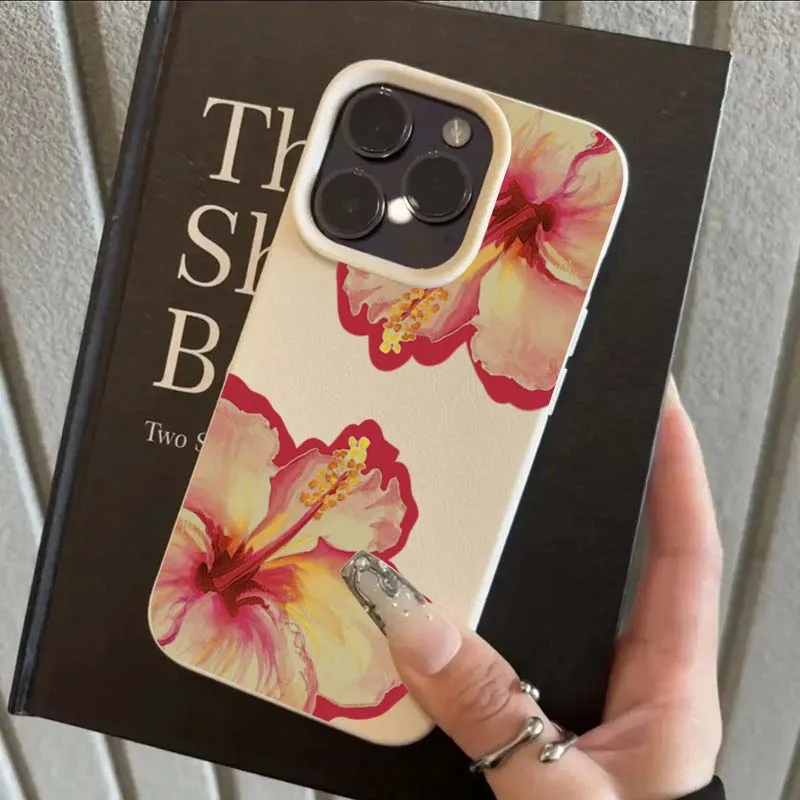 غطاء هاتف أنيق Elegant Pink Hibiscus Flower مصنوع من سيليكون الليتشي الناعم بتصميم زهرة الكركديه الوردية الفاخرة، يجمع بين الجمال والحماية في آنٍ واحد.