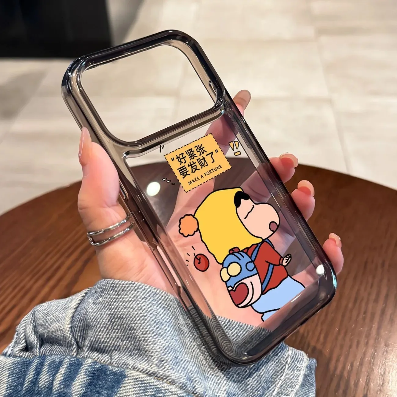 غطاء هاتف أنيق Cute Anime Crayon Shin Chan Get Rich بتصميم كرتوني لطيف وراقي يجمع بين الفخامة والمرح. مصمم لعشاق الأنمي بأسلوب عصري وشفاف يبرز جمال هاتفك